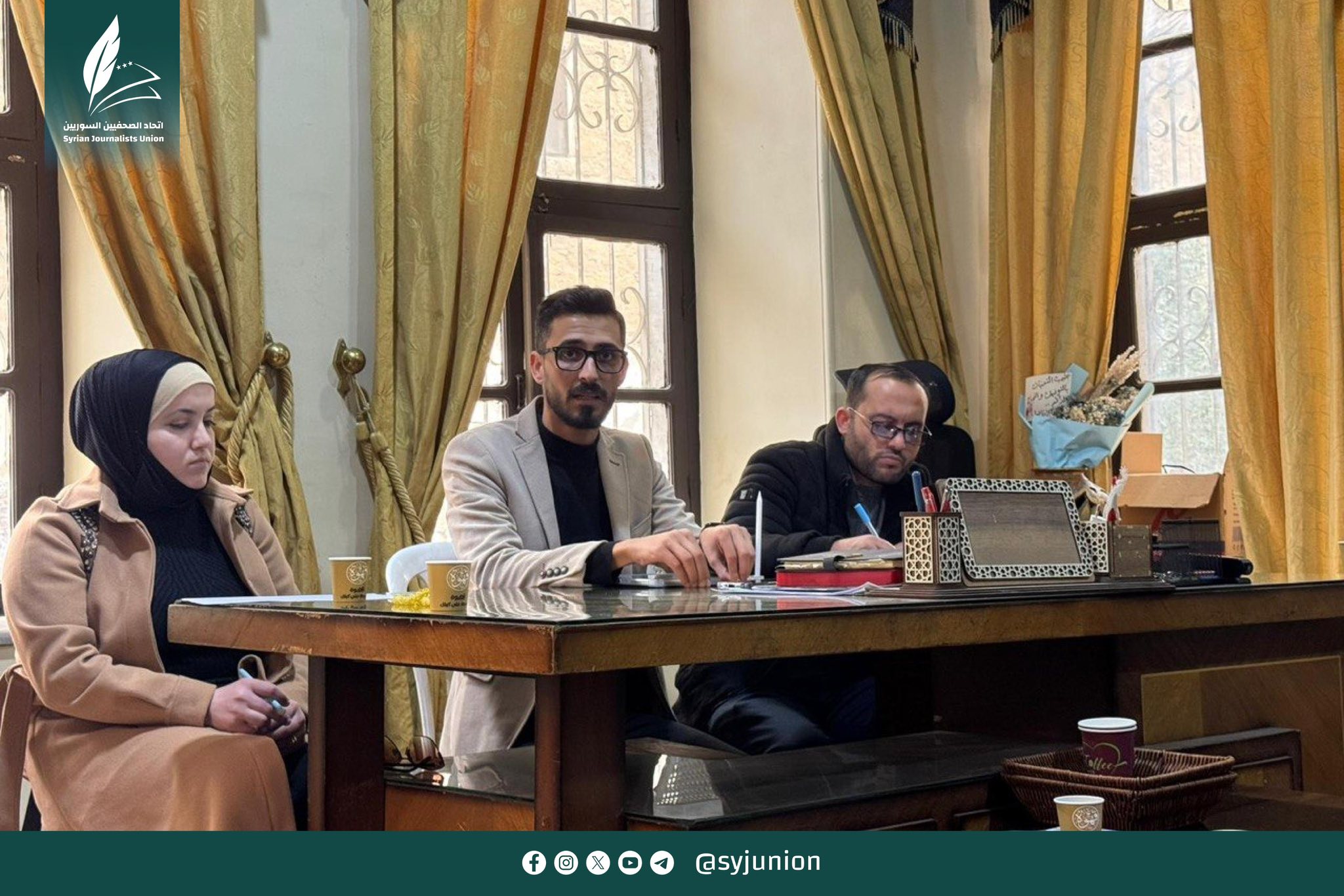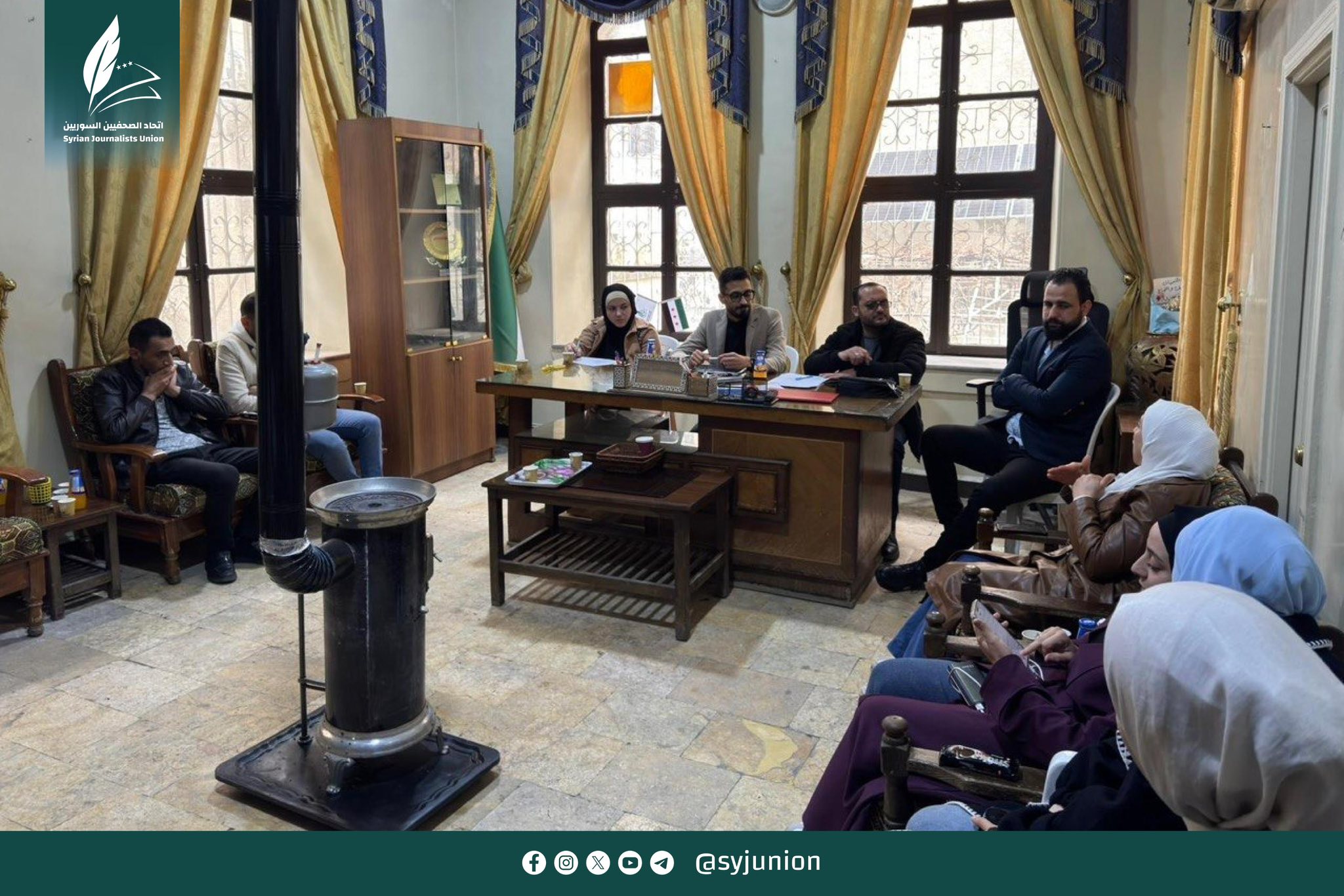 عقد فرع اتحاد الصحفيين بحلب جلسة حوارية برئاسة رئيس الفرع وبحضور أمين الشؤون المهنية للاتحاد، تم خلالها استعراض واقع العمل الصحفي الراهن ومناقشة خطة عمل الاتحاد المستقبلية.